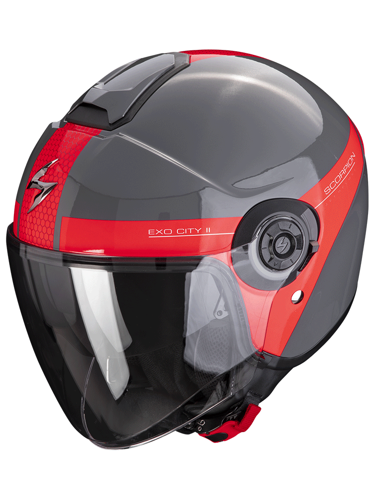 Kask otwarty Scorpion Exo-City II Short szaro-czerwony