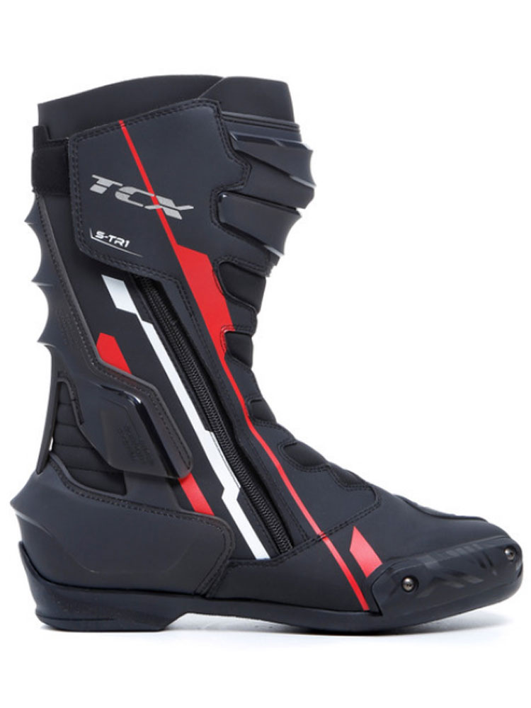TCX S-TR1 to sportowe buty motocyklowe, które zapewniają doskonałą ochronę oraz wysoki komfort użytkowania. Cholewka wykonana została z odpornej na przetarcia i przebicia mikrofibry z elastycznymi elementami poprawiającymi dopasowanie. W przedniej części zastosowano wymienny slider oraz wzmocnienie z TPU ułatwiające operowanie dźwignią zmiany biegów. Długi zamek błyskawiczny ułatwia zakładanie oraz zdejmowanie butów, a obszerny rzep pozwala lepiej dopasować górną część buta. Na goleniach oraz kostkach zastosowano protektory z PU. Torsion Manage System (T.C.S.) wykorzystuje zawias, który kontroluje ruchy motocyklisty, chroniąc go tym samym przed skręceniem lub nadwyrężeniem stawu skokowego. Wnętrze wyściełano przewiewną siateczką Air Tech. Amortyzująca wkładka Ortholite świetnie dopasowuje się do kształtu stopy. Gumowa podeszwa Groundtrax® utrzymuje nogę stabilnie na podnóżkach. Buty motocyklowe S-TR1 występują w różnych wersjach kolorystycznych w szerokiej gamie rozmiarów.