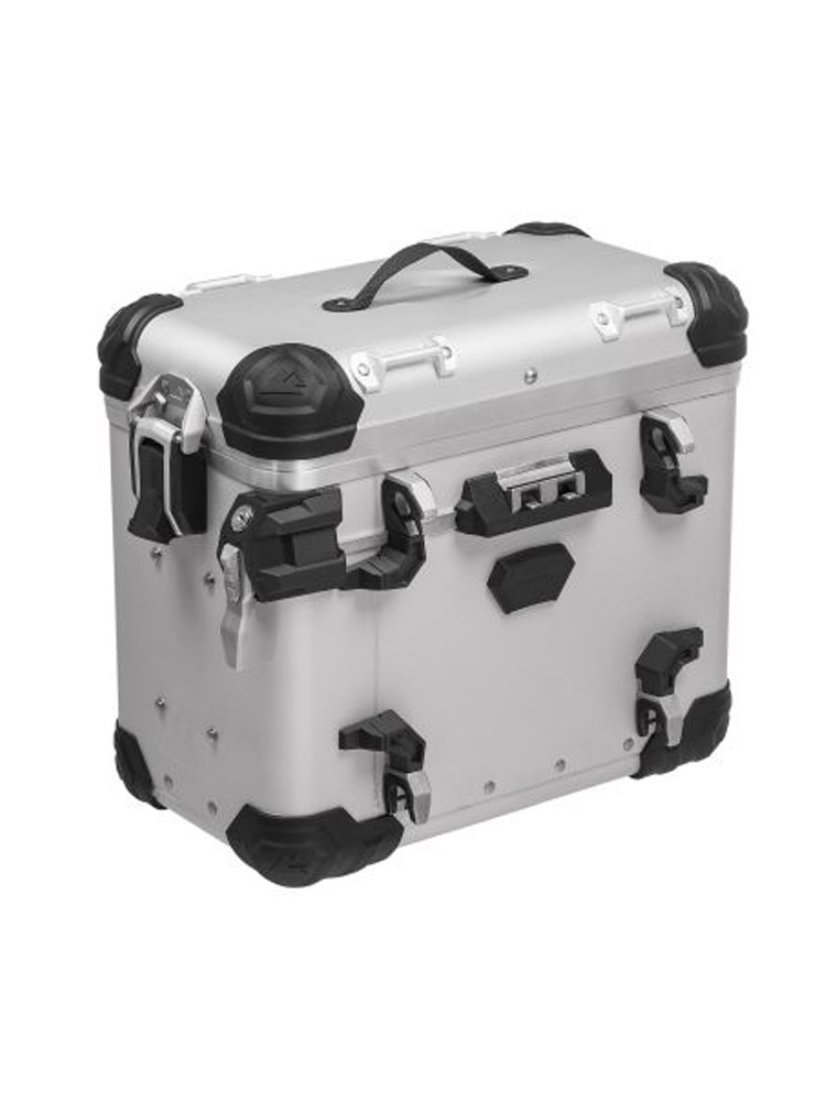 Kufry motocyklowe z serii Zega Evo, stworzone zostały z myślą o jeździe w zróżnicowanych warunkach pogodowych, nawet tych ekstremalnych. Nowo opracowany system wentylacji zmniejsza ciśnienie wewnątrz kufra, gdy poruszamy się motocyklem po drodze z dużymi wzniesieniami, gdzie występują duże różnice wysokości. Podobnie jak pozostałe kufry z serii Zega, model Zega Evo również wykonano w pełni z aluminiowego materiału, który oferuje niezwykłą wytrzymałość. Zintegrowana uszczelka silikonowa ochroni Twoje bagaże przed zamoknięcie nawet wtedy gdy na trasie zaskoczy Cię ulewa. Dużym atutem są zaokrąglone, wykonane z tworzywa sztucznego narożniki, które stanowią nie tylko element dekoracyjny, ale pełnią również funkcją ochronną w razie ewentualnej wywrotki.