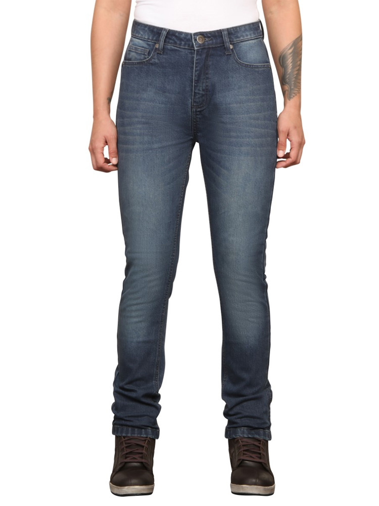 Jeansy motocyklowe damskie Modeka Lunella Mono to niezwykle praktyczna i wygodna odzież, którą możesz nosić przez cały dzień. Wyglądają jak cywilne jeansy, które nie zdradzają swojego motocyklowego przeznaczenia. Jeansy doskonale komponują się z kurtką bądź bluzą motocyklową oraz miejskimi butami ochronnymi. Do uszycia spodni wykorzystano jeans o gęstości 13 oz z domieszką stretchu dla większej elastyczności. Pozwala to na zachowanie pełnej mobilności przy zachowaniu wysokiej odporności na ścieranie. Potwierdzeniem tego jest uzyskany certyfikat bezpieczeństwa klasy AA. Jeansy wyposażone są w certyfikowane ochraniacze SAS-TEC, które swoją konstrukcją gwarantują skuteczną ochronę oraz wygodne noszenie. Jeansy mają dopasowany krój, który nie ogranicza ruchów. 5 klasycznych kieszeni oraz szlufki na opcjonalny pasek to cechy charakterystyczne dla jeansów. Model Lunella Mono dostępne są w kolorze czarnym i niebieskim z efektem sprania. Czarna wersja dostępna jest dodatkowo ze skracaną długością nogawki.