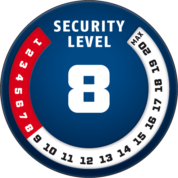 - Wytrzymała konstrukcja – 5 mm trzpień, korpus oraz inne kluczowe elementy wykonane ze specjalnie hartowanej stali, odpornej na próby sforsowania.