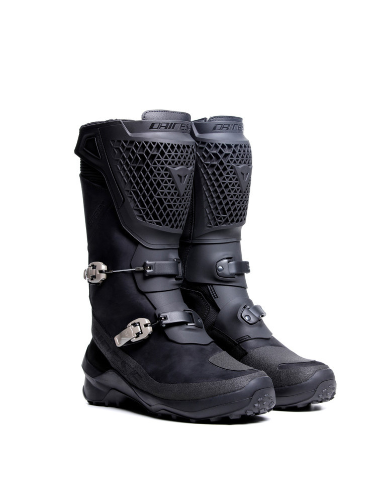Opracowane przez Dainese obuwie o wysokim poziomie bezpieczeństwa potwierdzone certyfikatem zgodnym z normą EN 13634 jako obuwie ochronne dla profesjonalnych motocyklistów, uzyskane w wyniku testów takich jak odporność na ścieranie i uderzanie, ryzyko pęknięcia, sztywność obuwia, siły wiązania czy odporność na poślizg.
