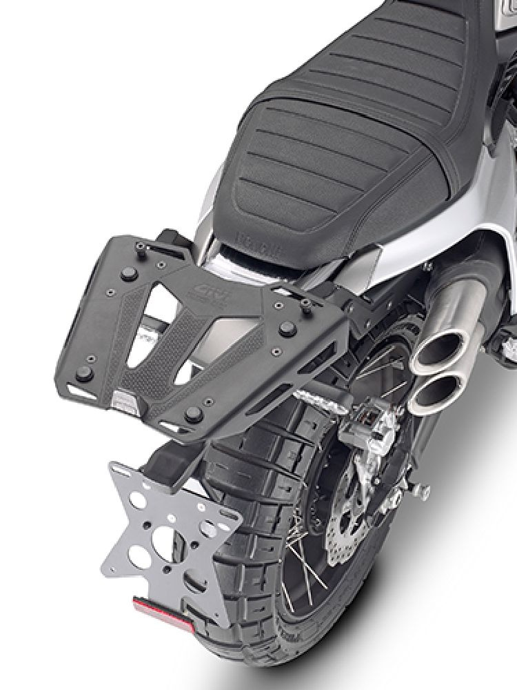 - Stelaż marki GIVI umożliwiający zamocowanie kufra centralnego na motocyklu.