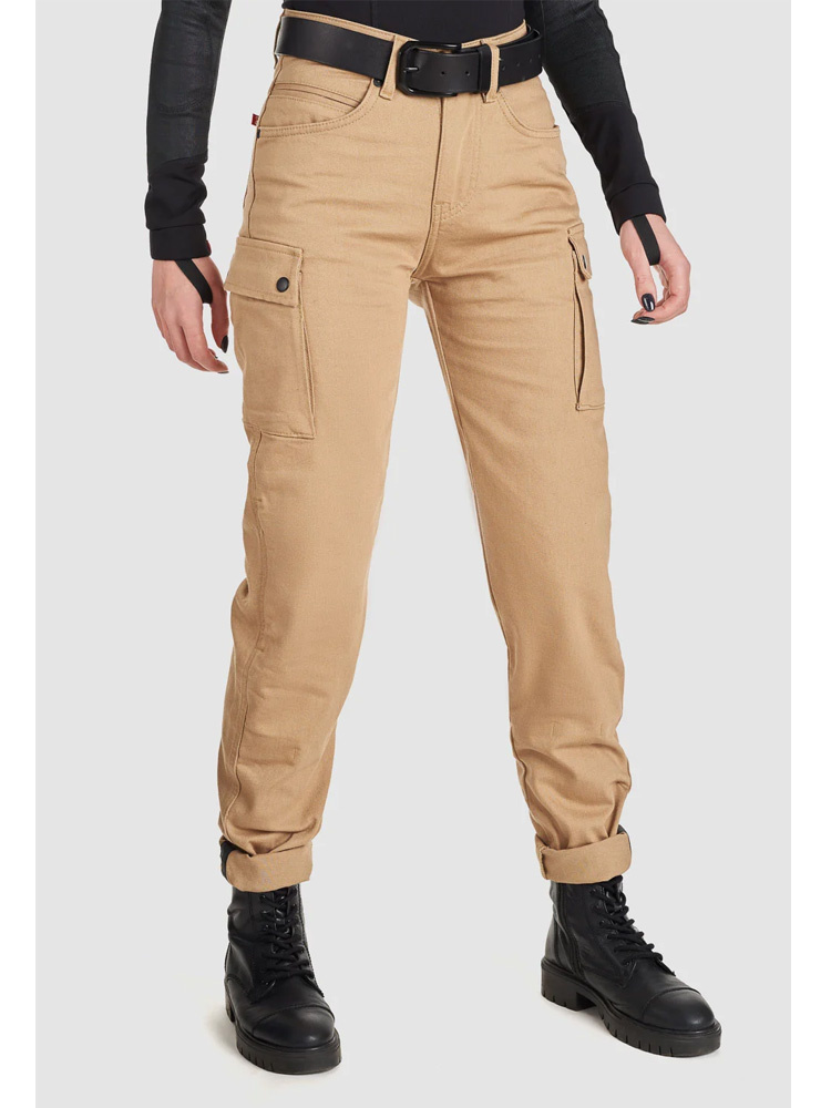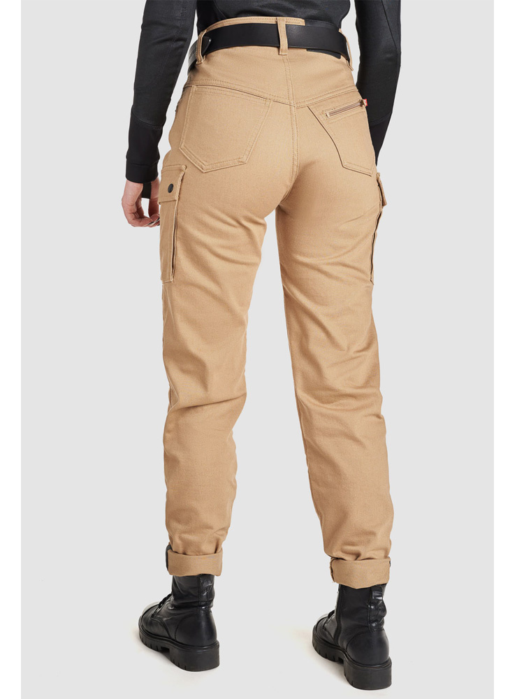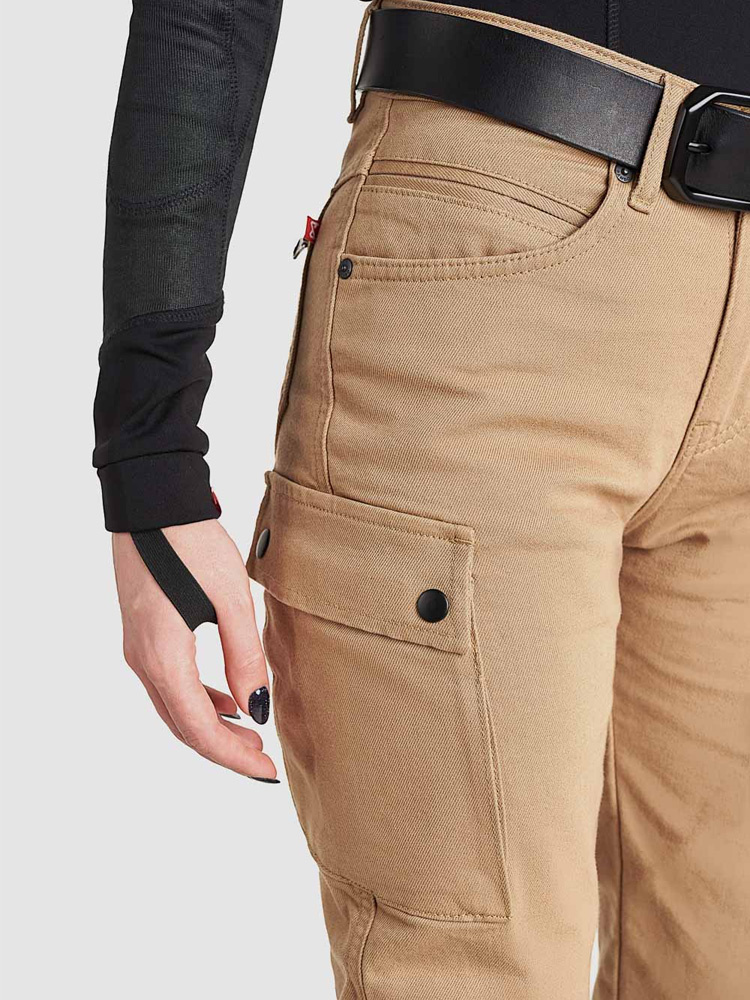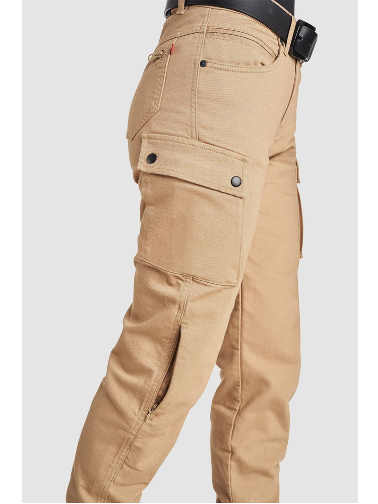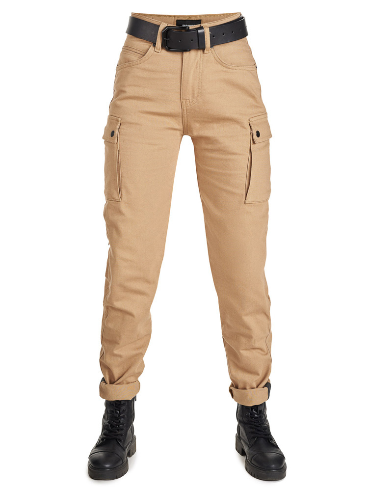 Jeansy motocyklowe damskie Pando Moto Mila Cargo brązowe