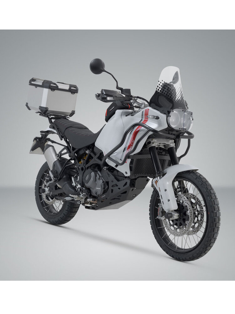 Zestaw: kufer centralny czarny TRAX ADV + stelaż Adventure-rack SW-Motech Ducati DesertX (22-)/ Rally (23-) [pojemność: 38 L]