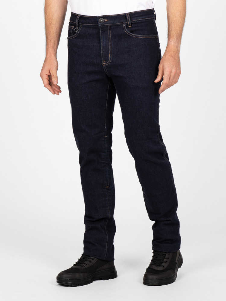 Posiadają certyfikat bezpieczeństwa EN17092 klasy A, który świadczy o bardzo dobrej odporności na przetarcie zastosowanego materiału. Jeansy w standardzie wyposażone są w certyfikowane ochraniacze Micro-Lock poziom 1, które osłaniają kolana oraz biodra. Ochraniacze te są wygodne w noszeniu, a w momencie uderzenia stają się solidną zbroją ochronną. Po wewnętrznej stronie kolan znajdują się dyskretne zamki, które pozwalają na wyjęcie ochraniaczy z zewnątrz. Jeansy posiadają solidne zamki YKK, pięć klasycznych kieszeni, szlufki na opcjonalny pasek oraz sześciokątny brelok na klucze. Uroku dodają detale w postaci skórzanej naszywki w pasie oraz nitów z logo Knox.