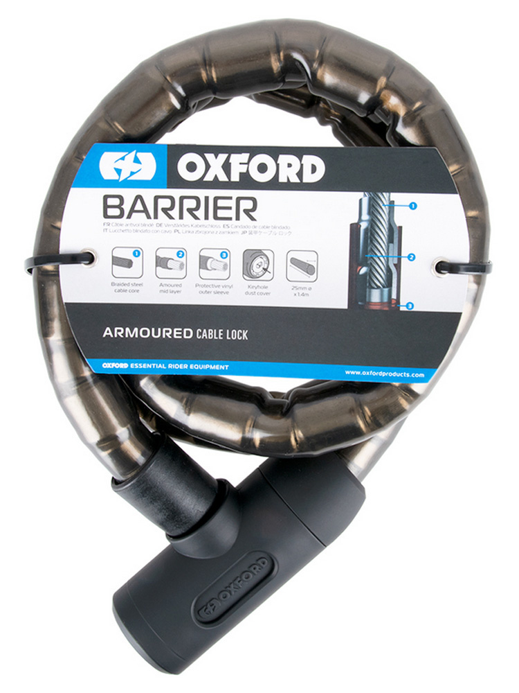 Kabel zabezpieczający przed kradzieżą Oxford Smoke ze wzmacnianym zapięciem [dł.: 1.4m]