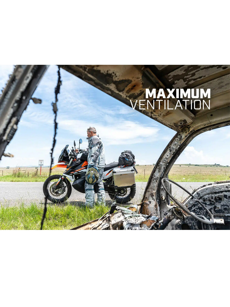 W ofercie marki Klim znajdują się wszechstronne spodnie motocyklowe tekstylne Badlands Pro A3, które sprawdzą się na dalekich trasach turystycznych. Zapewniają wydajną wentylację, ochronę przed zmiennymi warunkami pogodowymi oraz solidną konstrukcję. Spodnie wykonane są trzy warstwowego laminatu Gore-Tex® Pro, który gwarantuje wodo i wiatroszczelność oraz wysoką oddychalność. Niezwykle wytrzymały materiał Vectran™ oraz wzmocnienia na kolanach z Superfabric® i skórzane panele po wewnętrznej stronie kolan zapewniają wysoką odporność na ścieranie i przetarcie. Zastosowanie tak mocnych materiałów pozwoliło uzyskać najwyższy certyfikat bezpieczeństwa klasy AAA. Model ten wyposażony jest w wysokiej jakości ochraniacze kola i bioder Klim® Aero PRO™ D3O, które skutecznie rozpraszają energię uderzenia. Bezpieczeństwo bierne zapewniają elementy odblaskowe 3M Scotchlite™. Dzięki nim będziesz doskonale widoczny na drodze. Oprócz doskonałej ochrony przed deszczem spodnie oferują wydajną wentylację. Możliwe jest to dzięki zamkom umieszczonym na przodzie i w tyle ud oraz w dolnej części nogawek. Proces chłodzenia wspomagany jest przez specjalną siatkę Klimatek™, z której uszyte są kieszenie na ochraniacze oraz tył kolan. Wewnątrz spodni producent umieścił podszewkę z tkaniny Polygiene®, która cechuje się właściwościami antybakteryjnymi oraz wysoką oddychalnością. Regulacja w pasie, pod kolanami oraz na nogawkach pozwala na jeszcze lepsze dopasowanie spodni do Twojej sylwetki. Praktyczne kieszenie cargo na udach pomieszczą niezbędne osobiste rzeczy. Miłym dodatkiem jest panel Molle na prawej nogawce. Połącz spodnie z kurtką motocyklową Badlands Pro A3 za pomocą zamka i zyskaj wygodny i bezpieczny komplet na dalekie wyprawy.