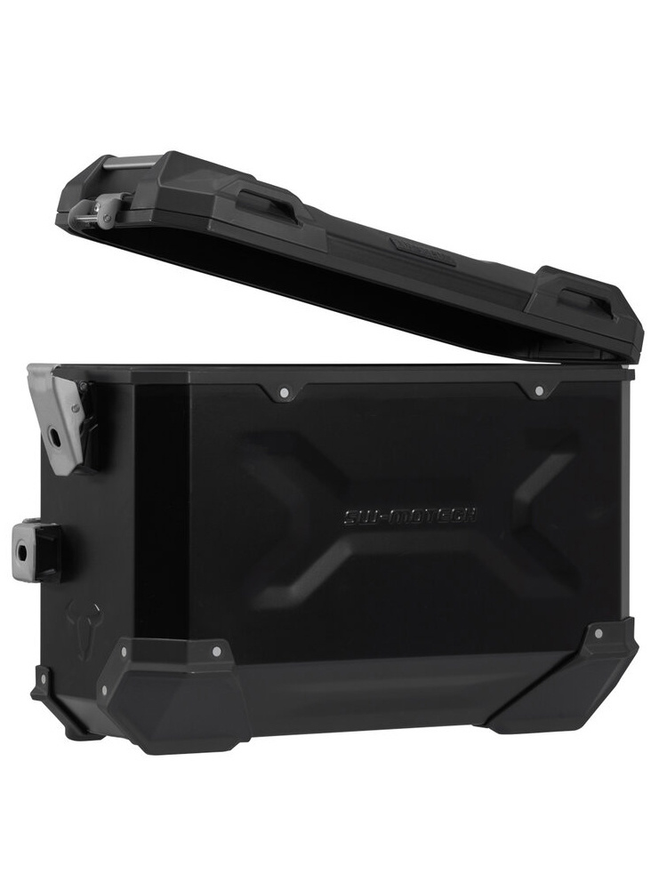 Wytrzymałe aluminiowe kufry TRAX ADV sprawiają, że czujesz się jak w domu na każdym odcinku drogi: wytłoczone wzory zwiększają stabilność spawanego aluminium o grubości 1,5 milimetra. Całkowicie zdejmowana pokrywa z uchwytami wykonanymi z anodyzowanego aluminium oraz zapięcie błyskawiczne ułatwiają załadunek i rozładunek bagażu motocyklowego; fazowana krawędź boczna zapewnia duży prześwit podczas pokonywania zakrętów. Stelaż i wielkość kufrów są idealnie dopasowane do tylnego kształtu i układu wydechowego motocykla. Przy rozwoju TRAX ADVENTURE pojawiło się następujące wyzwanie. Zbudować kufry, które pokonają wszystkie przeszkody motocyklowej codzienności, lekkie i łatwe w obsłudze, po prostu dobre: od praktycznego zamka błyskawicznego, przez zdejmowalną pokrywę, po ergonomiczny uchwyt. TRAX ADVENTURE łączą wysoką jakość z niską wagą. Ważą tylko od 4,6kg do 5,4 kg, czyli należą do grupy najlżejszych kufrów w swojej klasie.
