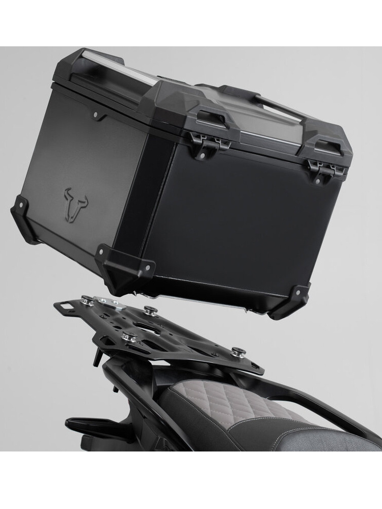 Kompletny zestaw, czyli wszystkie produkty pod jednym indeksem za pomocą których zamontujesz kufer centralny na swoim motocyklu. W skład tego zestawu wchodzą wszystkie produkty, tj.: kufer centralny TraX ADV, zamki do kufrów, płyta adaptacyjna, dedykowany do motocykla stelaż ADVENTURE-RACK. Przy rozwoju TraX ADV pojawiło się następujące wyzwanie. Zbudować kufry, które pokonają wszystkie przeszkody motocyklowej codzienności, lekkie i łatwe w obsłudze, po prostu dobre: od praktycznego zamka błyskawicznego, przez zdejmowalną pokrywę, po ergonomiczny uchwyt. TraX ADV łączą wysoką jakość z niską wagą. Ważą tylko od 4,6kg do 5,4 kg, czyli należą do grupy najlżejszych kufrów w swojej klasie.