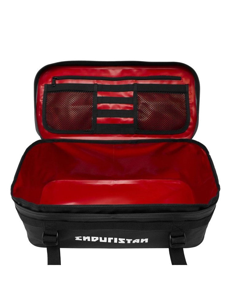 - Dwie kieszenie z siatki, zapinane na rzepy pod pokrywą z zamkiem