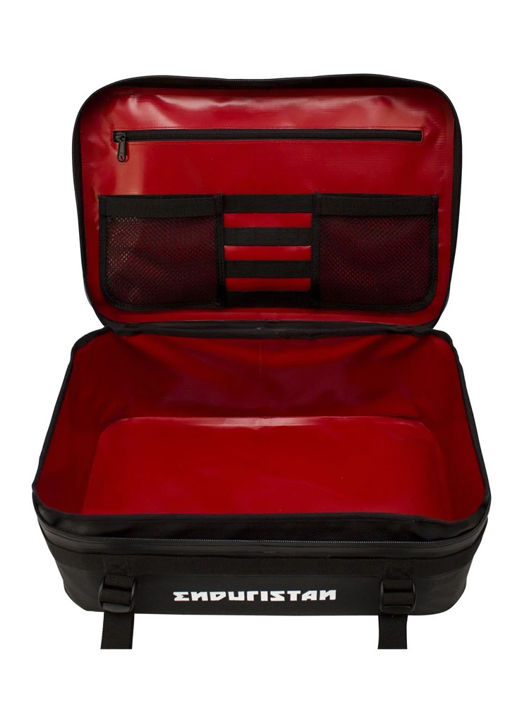 - Cztery paski z haczykami dla bezpiecznego mocowania torby do kufra
