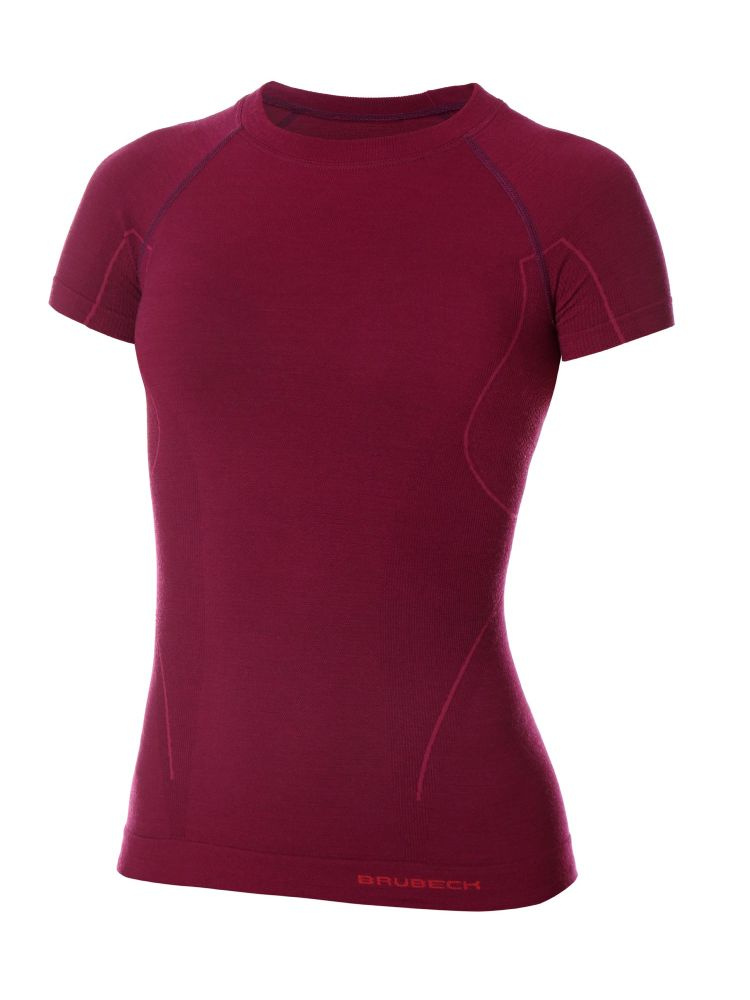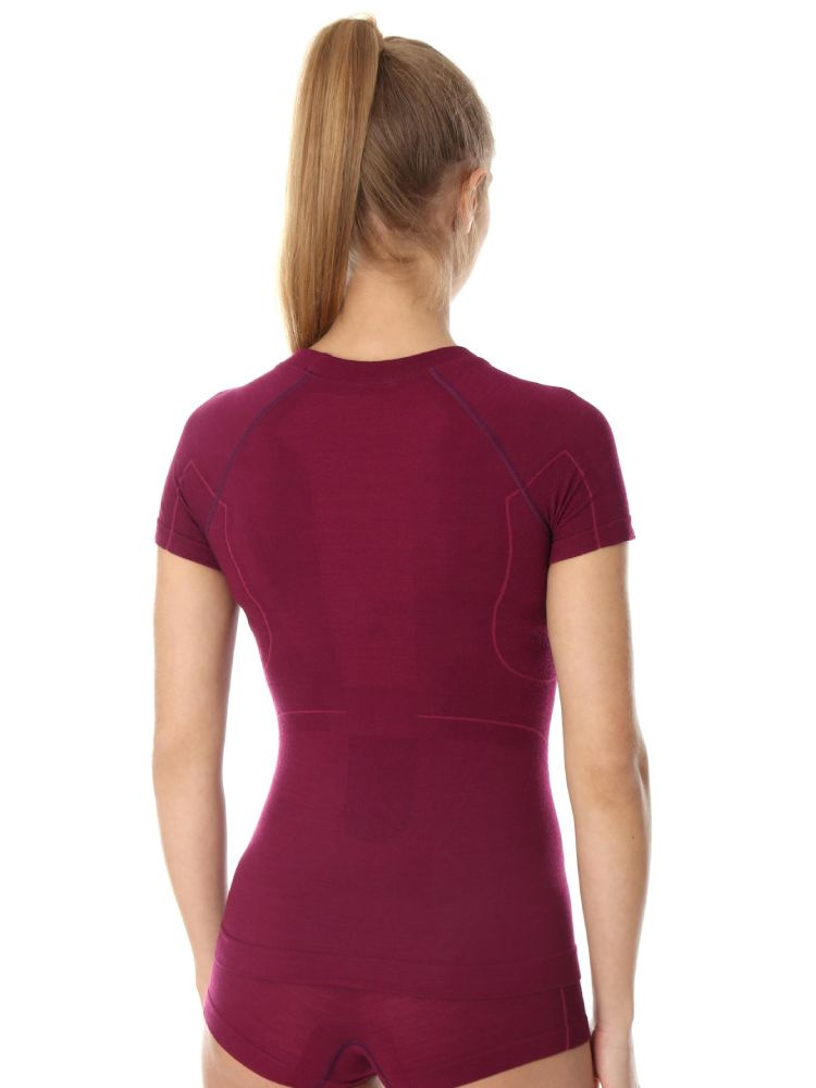 Koszulka damska Brubeck Active Wool z krótkim rękawem śliwkowa