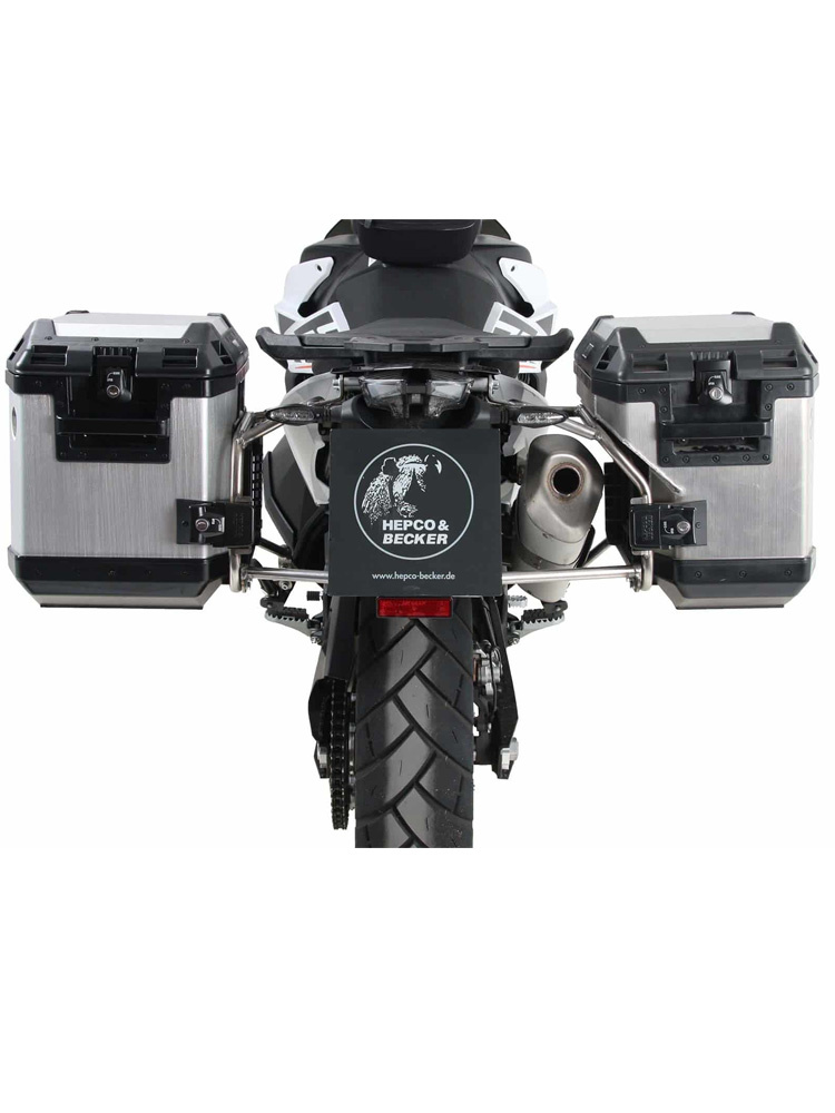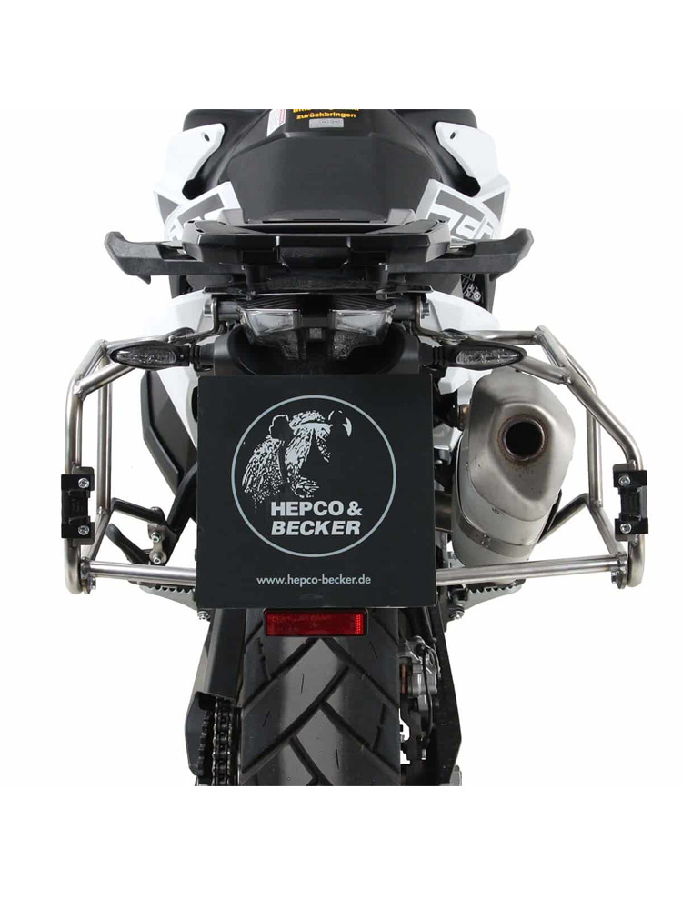 - zestaw kufrów bocznych Xplorer Cutout wraz ze stelażem bocznym (na prawą i lewą stronę) ze stali nierdzewnej,