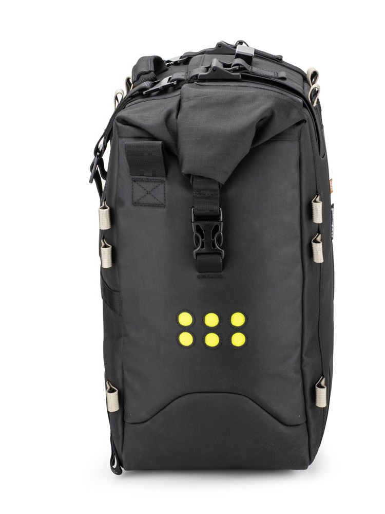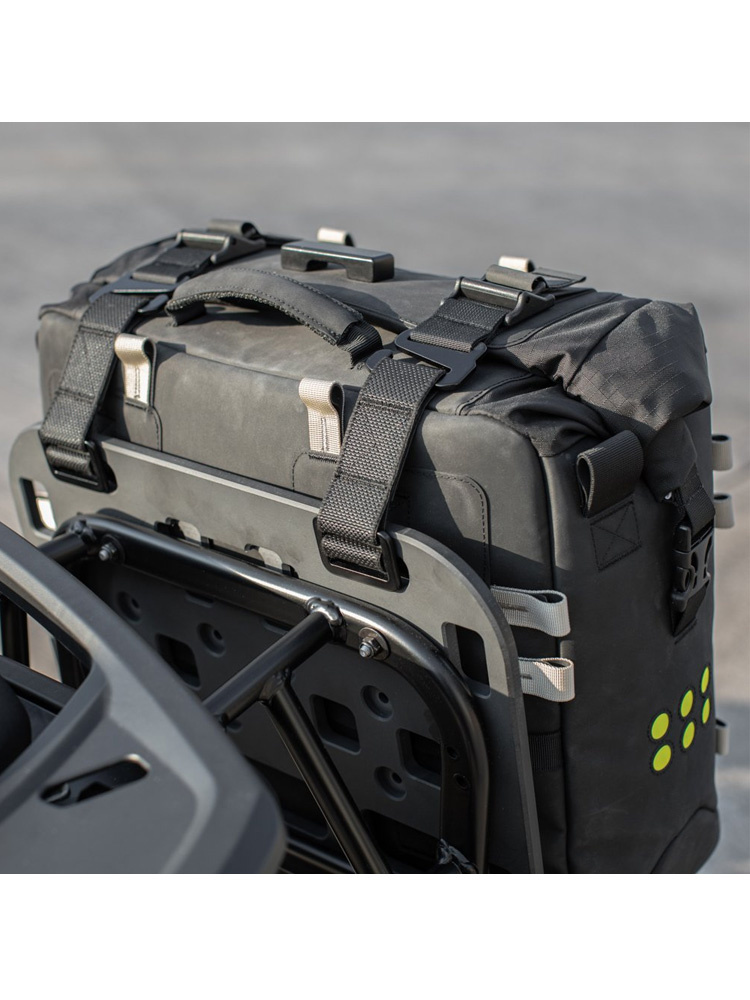 OS-38 Soft Pannier to torba motocyklowa od marki Kriega, która wyróżnia się niezwykłą funkcjonalnością oraz wyznacza nowe standardy w dziedzinie tego typu bagaży. Dedykowana dla miłośników dalekich, turystycznych podróży, poszukujących idealnego sprzętu do przechowywania rzeczy podczas jazdy motocyklem. Wykonana z najwyższej jakości materiałów, w tym odpornego na różnego rodzaju przetarcia materiału Hypalon oraz bardzo wytrzymałej tkaniny Cordura 1000D, która dodatkowo chroni torbę przed uszkodzeniami. Dodatkowo w wersji Soft Pannier zastosowano wzmocnienia, w postaci Kevlara. W stu procentach wodoodporne zamknięcie typu roll-top z wyjmowaną białą wkładką gwarantuje ochronę przed przedostaniem się wody do wnętrza torby. Możliwość dopasowania torby na dwa sposoby: "na siedzenie" lub zaczepienie o ramę motocykla zwiększy komfort użytkowania. Sam montaż jest niezwykle prosty i zajmuje niecałą minutę, dzięki dwóm szybko odpinanym paskom i klamrom. Strukturalna konstrukcja umożliwia szybkie, a zarazem niezwykle łatwe pakowanie i wypakowanie zawartości torby. Rozmieszczone strategicznie elementy odblaskowe w znacznym stopniu poprawiają widoczność, zwłaszcza podczas nocnych wypraw motocyklowych.