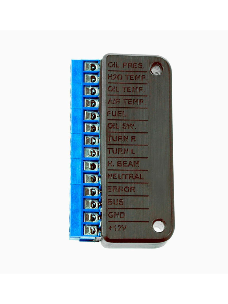 - Adapter posiada następujące wejścia: poziom/rezerwa paliwa, czujnik ciśnienia oleju, lewy i prawy kierunkowskaz, światła drogowe, bieg neutralny, lampka ostrzegawcza silnika (Check Engine), temperatura