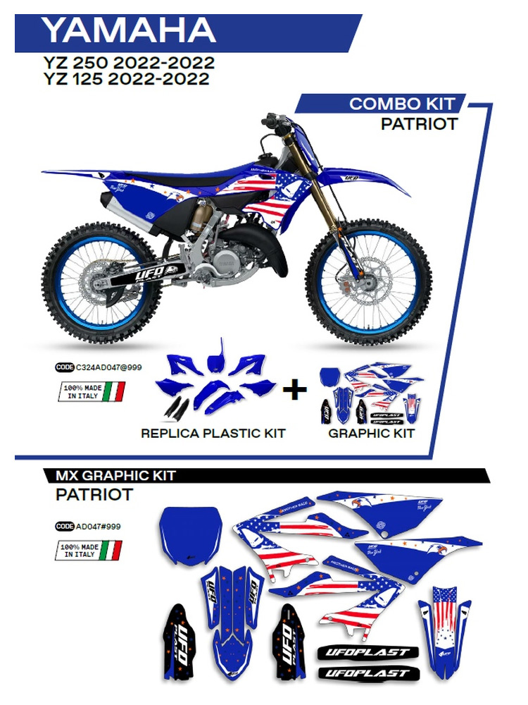 Komplet plastików i naklejek UFO Patriot do Yamahy YZ 125/250 (22-) biało-niebieski