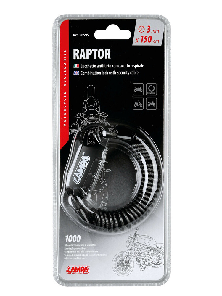 Linka zabezpieczająca z zamkiem szyfrowanym Lampa Raptor [150 cm]