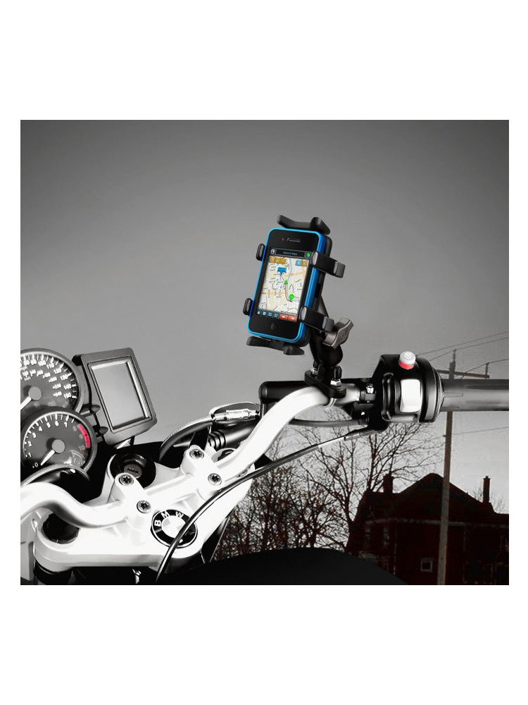 Uchwyt montowany do ramy kierownicy. Jest zintegrowany z ramieniem o długości 9.37 cm oraz z 2.54 cm głowicą obrotową, która umożliwia montaż uchwytu dedykowanego do urządzenia mobilnego np. nawigacji na motocykl oraz daje możliwość regulacji uchwytu w różnych kierunkach.