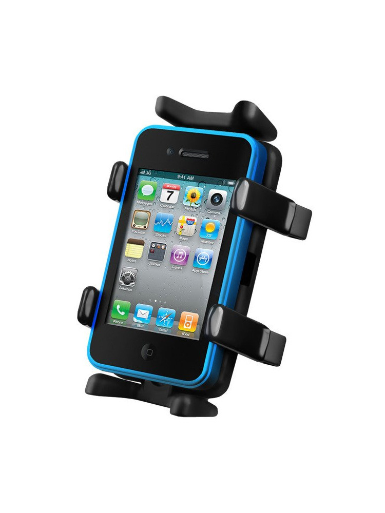 Uniwersalny uchwyt Finger Grip™ został zaprojektowany do współpracy z telefonami komórkowymi oraz urządzeniami elektronicznymi, takimi jak np. radiotelefony, urządzenia GPS itp. W skład uchwytu wchodzą trzy zestawy różnej długości, elastycznych ramion rozmieszczonych po bokach oraz dodatkowe płytki umieszczone w dolnej i górnej części, powodujące bardzo stabilne trzymanie urządzenia. Opatentowany projekt uchwytu pozwala na swobodne umieszczanie i wyjmowanie urządzenia. RAM-HOL-UN4U jest idealnym rozwiązaniem do montażu telefonu w samochodzie, na łodzi, na motocyklu, quadzie itp. Tylna część uchwytu posiada otwory umożliwiające połączenie go za pomocą śrubek z dowolnym elementem montażowym RAM Mount.