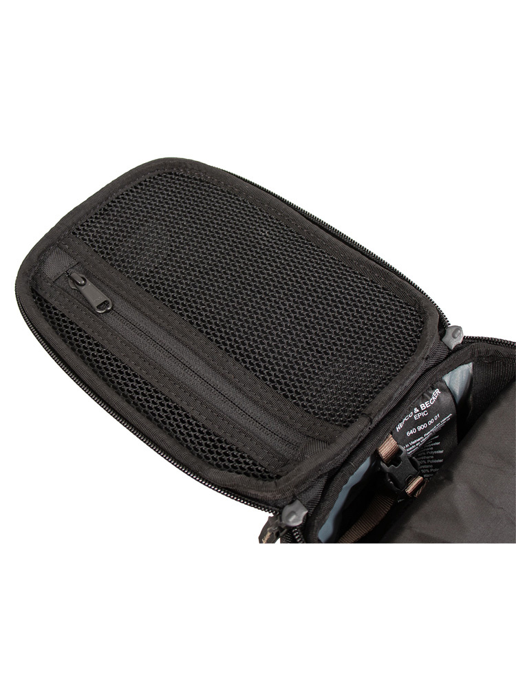 - system pętelek na pokrywie do mocowania opcjonalnych akcesoriów, takich jak etui na kartę, smartfon, mapę Hepco&Becker