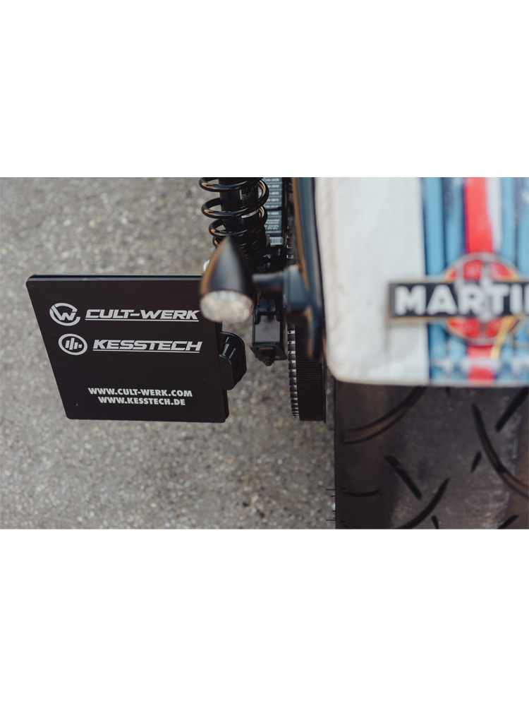 - ponieważ uchwyt na tablicę rejestracyjną Cult-Werk ma wyjątkowo krótką stopkę montażową w porównaniu do innych uchwytów na tablicę rejestracyjną dostępnych na rynku, jest on znacznie