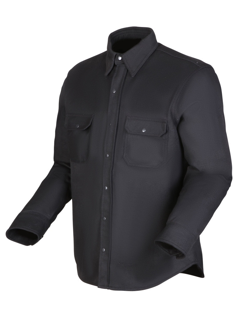 Koszula motocyklowa Colden od Modeki oferuje miejski styl bez uszczerbku dla bezpieczeństwa. Ten miejski model dostępny jest w trzech kolorach czarnym gładkim oraz czarno-białym i czarno-czerwonym w kratę. Model Colden uszyty jest z miękkiej i przyjemnej bawełny, która jednocześnie jest oddychająca i wytrzymała oraz elastycznego i trwałego poliestru. Koszula w całości wzmocniona jest włóknem aramidowym, które wyróżnia się niezwykłą odpornością na ścieranie i przetarcie. Certyfikat bezpieczeństwa klasy AA jest potwierdzeniem solidnej konstrukcji. Na wyposażeniu koszuli motocyklowej znajdują się atestowane ochraniacze Winner®, które osłaniają łokcie i ramiona. Stanowią skuteczną ochronę przed energią przenoszoną podczas uderzenia. Opcjonalnie masz możliwość założenia dedykowanego ochraniacza pleców SAS-TEC. Stylowy wygląd podkreślają dwie kieszenie na klatce piersiowej.