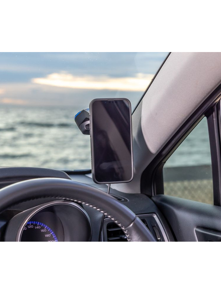 - dzięki przyssawce uchwyt można zamontować na szybie, desce rozdzielczej i innych powierzchniach