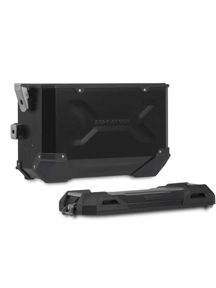 Aluminiowe kufry SW- MOTECH TRAX ADV na nowo definiują doskonałość bagażu motocyklowego. Wykonane z wytrzymałego aluminium o grubości 1,5 milimetra z wytłoczonymi wzorami zwiększającymi stabilność, TRAX ADV jest świadectwem wytrzymałości i niezawodności. Całkowicie zdejmowana pokrywa, wyposażona w uchwyty do przenoszenia z anodyzowanego aluminium i szybkozamykacze, zapewnia łatwy załadunek i rozładunek, a ścięta krawędź boczna gwarantuje optymalny prześwit pod pojazdem podczas pokonywania zakrętów. Zestaw kufrów Trax ADV obejmuje dwa wodoodporne kufry boczne TRAX ADV, uzupełnione dwoma zdejmowanymi bocznymi stelażami SW-MOTECH, zestaw adapterów, zestaw zamków, ogranicznik pokrywy i zabezpieczenie antykradzieżowe – wszystko w pakiecie w atrakcyjnej cenie. Bagażnik dostosowany do konkretnego motocykla i precyzyjnie dopasowane rozmiary kufrów idealnie współgrają z kształtem tyłu motocykla i układem wydechowym. Przy opracowywaniu TRAX ADV nie było żadnych kompromisów. Kładąc nacisk na stabilność, nieprzepuszczalność dla kurzu i wody oraz przyjazną dla użytkownika obsługę, te wysokiej jakości aluminiowe kufry sprostają każdemu wyzwaniu. Niezależnie od tego, czy wyruszasz na przygodę w terenie, dłuższą podróż czy szybką przejażdżkę, TRAX ADV ze ścianami o grubości 1,5 milimetra okazuje się niepokonanym mistrzem, gotowym towarzyszyć Ci w każdej podróży.