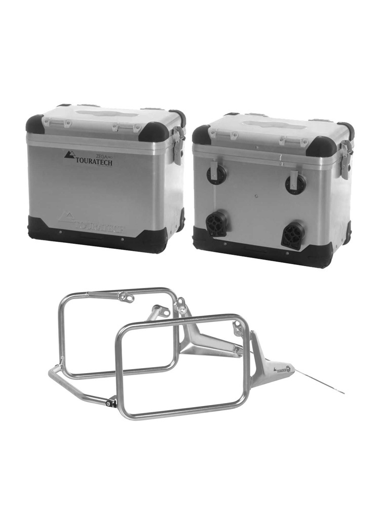 Zestaw: kufry boczne aluminiowe srebrne Zega Pro + stelaże Touratech do BMW R 1300 GS (23-) (45+45L)