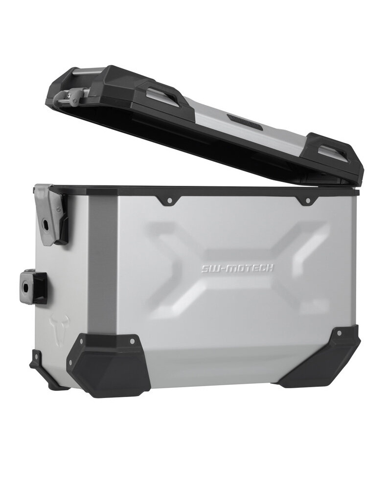 Aluminiowe kufry SW- MOTECH TRAX ADV na nowo definiują doskonałość bagażu motocyklowego. Wykonane z wytrzymałego aluminium o grubości 1,5 milimetra z wytłoczonymi wzorami zwiększającymi stabilność, TRAX ADV jest świadectwem wytrzymałości i niezawodności. Całkowicie zdejmowana pokrywa, wyposażona w uchwyty do przenoszenia z anodyzowanego aluminium i szybkozamykacze, zapewnia łatwy załadunek i rozładunek, a ścięta krawędź boczna gwarantuje optymalny prześwit pod pojazdem podczas pokonywania zakrętów. Zestaw kufrów Trax ADV obejmuje dwa wodoodporne kufry boczne TRAX ADV, uzupełnione dwoma zdejmowanymi bocznymi stelażami SW-MOTECH, zestaw adapterów, zestaw zamków, ogranicznik pokrywy i zabezpieczenie antykradzieżowe – wszystko w pakiecie w atrakcyjnej cenie. Bagażnik dostosowany do konkretnego motocykla i precyzyjnie dopasowane rozmiary kufrów idealnie współgrają z kształtem tyłu motocykla i układem wydechowym. Przy opracowywaniu TRAX ADV nie było żadnych kompromisów. Kładąc nacisk na stabilność, nieprzepuszczalność dla kurzu i wody oraz przyjazną dla użytkownika obsługę, te wysokiej jakości aluminiowe kufry sprostają każdemu wyzwaniu. Niezależnie od tego, czy wyruszasz na przygodę w terenie, dłuższą podróż czy szybką przejażdżkę, TRAX ADV ze ścianami o grubości 1,5 milimetra okazuje się niepokonanym mistrzem, gotowym towarzyszyć Ci w każdej podróży.