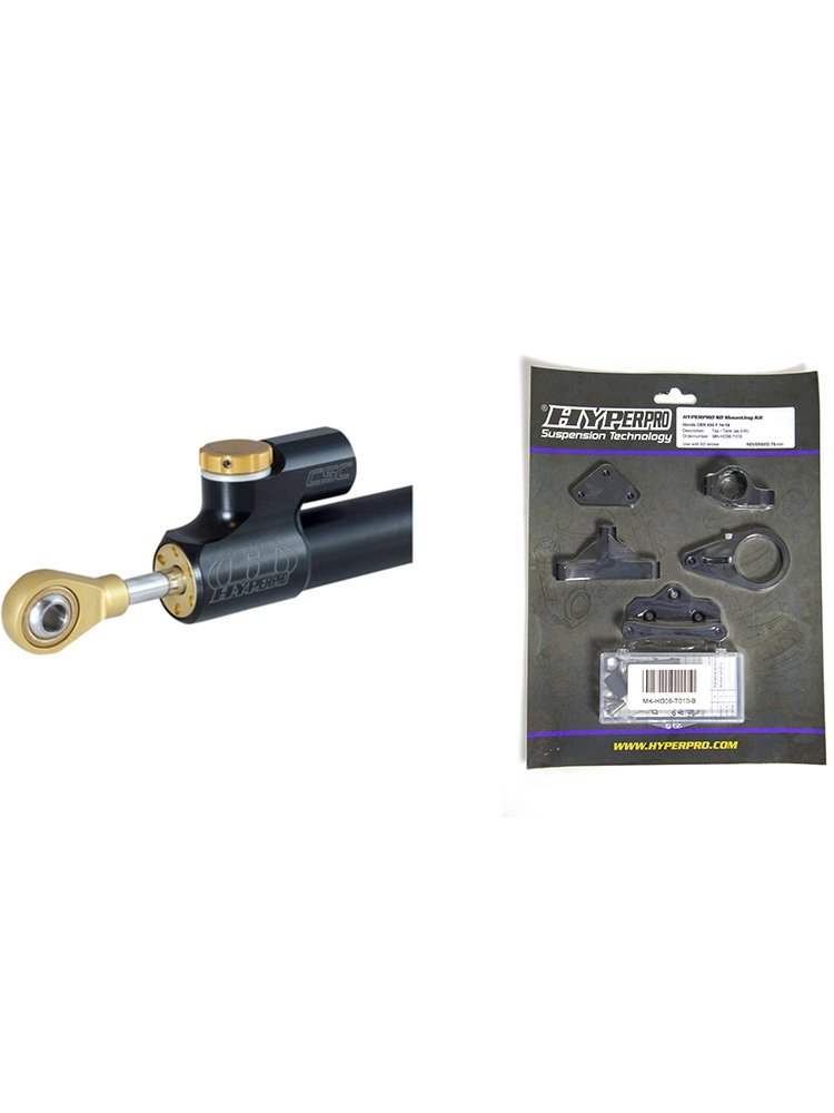 Zestaw: amortyzator skrętu progresywny odwrócony Hyperpro RSC [75 mm] + zestaw mocujący do Hondy CBR 650F (14-18) złoty