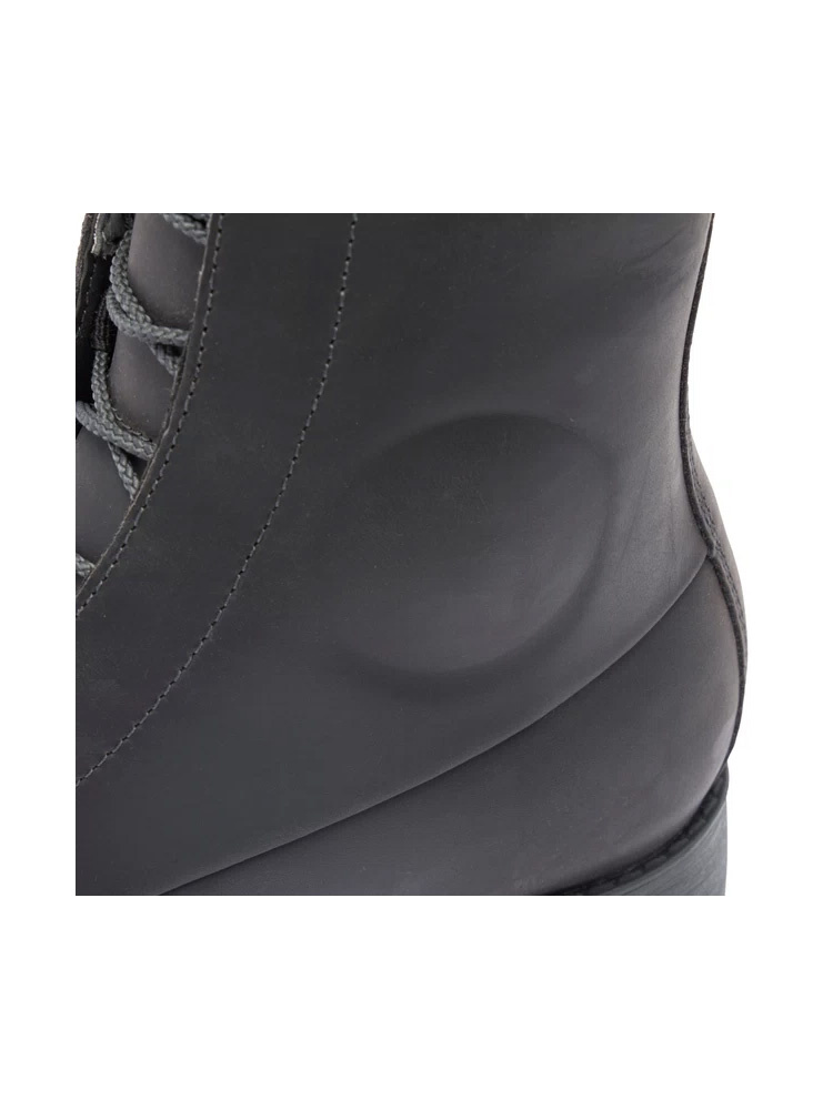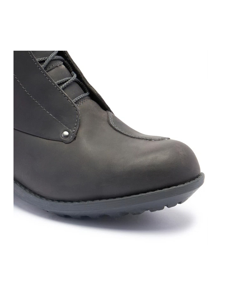 Niezwykle wygodne i stylowe damskie buty na choppera Blend 2 WP to nowość w ofercie marki TCX. Model ten jest świetnym wyborem na krótkie wypady poza miasto, jak i w codziennej jeździe. Uszyte są z wysokiej jakości miękkiej skóry licowej z wykończeniem typu pull-up. Liczne wzmocnienia w obszarze pięt, kostek i palców skutecznie chronią przed poważniejszymi kontuzjami. Miejsce styku buta z dźwignią zmiany biegów wzmocnione jest dodatkową warstwą skóry, dzięki czemu wygodniej jest operować dźwignią. Osłona ta chroni również przed zbyt szybkim zużyciem materiału. To, co wyróżnia damskie buty na choppera Blend 2 WP to zintegrowana membrana T-Dry, która cechuje się wodoodpornością i oddychalnością. Dzięki niej możesz bez problemu nosić je w czasie lekkiego deszczu. Doskonałą przyczepność i stabilność na każdym podłożu i w każdych warunkach gwarantuje gumowa i wytrzymała podeszwa zewnętrzna Groundtrax® ze zróżnicowanym bieżnikiem oraz obcasem 3.5 cm. O komfort stóp dba innowacyjna wkładka OrthoLite®, która ma właściwości amortyzacyjne i antybakteryjne. Klasyczny system sznurowania zapewnia precyzyjne i idealne dopasowanie.