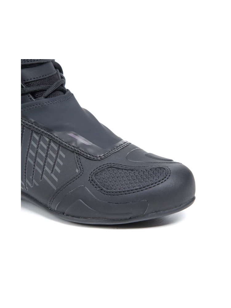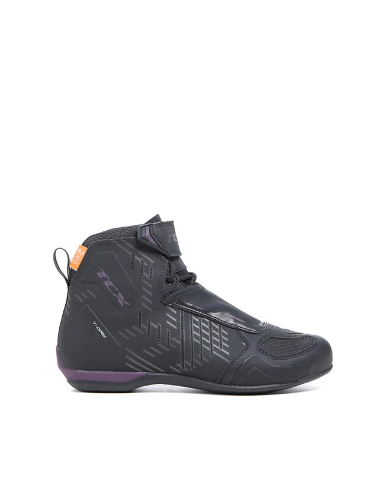 Damskie buty motocyklowe R04D WP to idealny wybór do codziennej jazdy motocyklem po mieście. Cywilnie wyglądające buty są tak zaprojektowane, abyś mogła w nich komfortowo spędzić cały dzień. Wykonane są w większości z wytrzymałej mikrofibry, a także z meshu pokrytego specjalną powłoką. Meshowe wstawki znajdują się na języku, górnej części cholewki oraz na przodzie. Zaletą damskich butów motocyklowych R04D WP jest membrana T-Dry, która cechuje się wodoodpornością i oddychalnością. Takie rozwiązanie pozwala komfortowo użytkować je w wilgotnych warunkach. O bezpieczeństwo dbają ochraniacze kostek D3O oraz wzmocnienia na palcach i pięcie. Nie zabrakło również odblasków, które zwiększą Twoją widoczność podczas jazdy po zmierzchu i w słabych warunkach pogodowych. Aby zapewnić wygodną i sprawną obsługę dźwigni zmiany biegów, w przedniej część buta producent umieścił skórzaną osłonę Bycast. Zastosowanie innowacyjnej wkładki OrthoLite® sprawia, że stopy nie odczują dyskomfortu po całodziennym noszeniu butów. Wkładka ta zapewnia świetną amortyzację i oddychalność. Cechuje ją lekkość i sprężystość oraz właściwości antybakteryjne. Doskonałą przyczepność oferuje gumowa podeszwa zewnętrzna Groundtrax® o zróżnicowanym bieżniku. Standardowy system sznurowania z zapięciem na rzep zapewnia idealne dopasowanie za każdym razem.