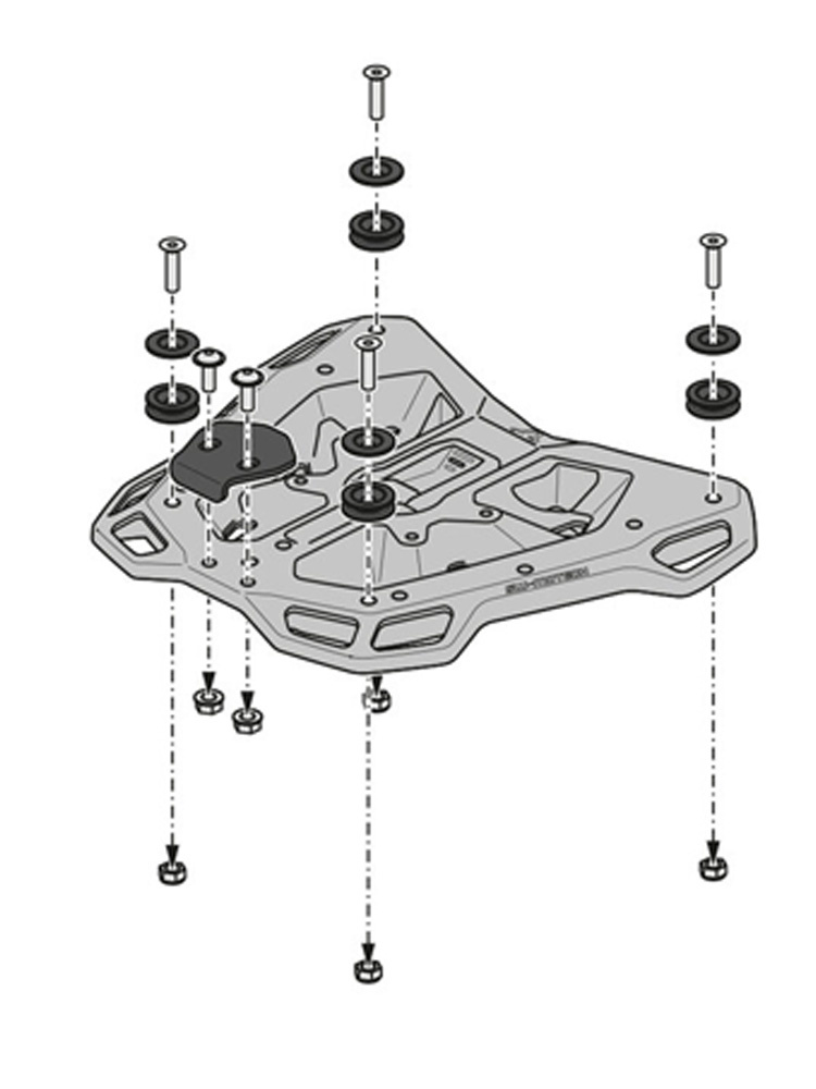- kufra centralnego TRAX marki Sw-Motech bądź kufra innego producenta niezbędne jest zamontowanie adaptera - płyty montażowej pod kufer danego producenta (adapter dostępny jako odrębny produkt),