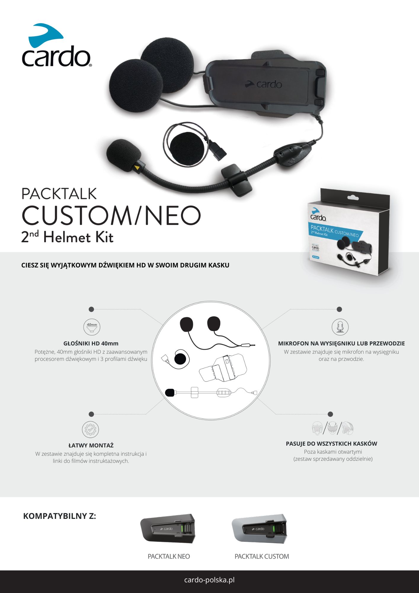 - produkt kompatybilny z interkomami Cardo Packtalk Neo oraz Packtalk Custom.