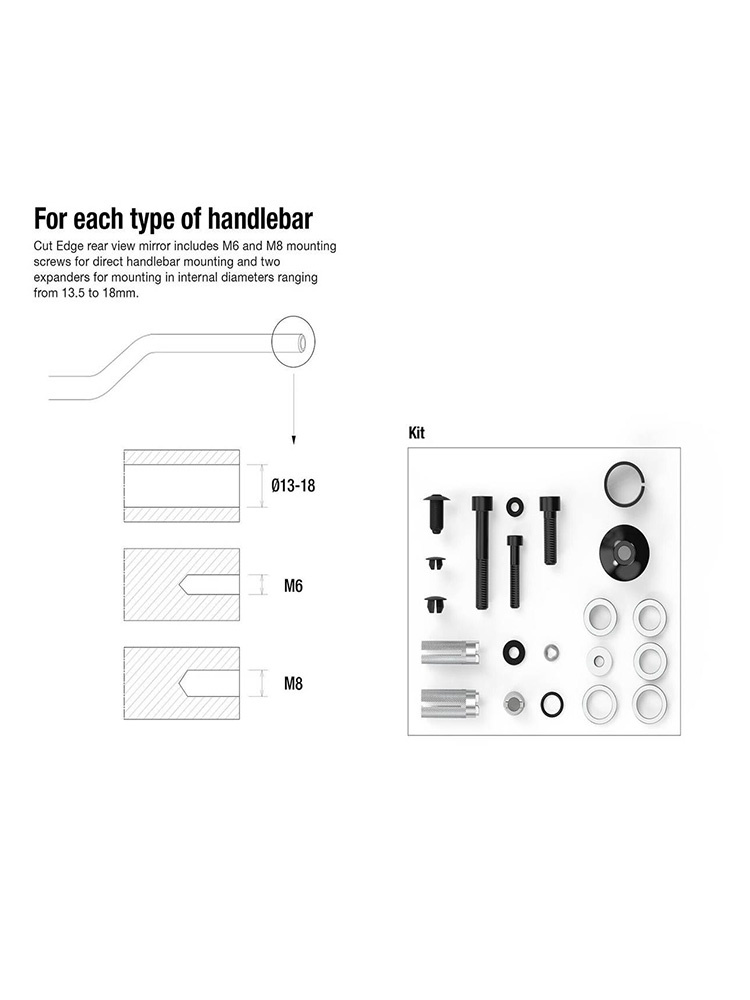 - końcówka kierownicy (w zestawie) na dowolnej kierownicy o średnicy wewnętrznej 13,5–18 mm