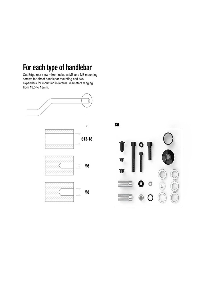 - końcówka kierownicy (w zestawie) na dowolnej kierownicy o średnicy wewnętrznej 13,5–18 mm