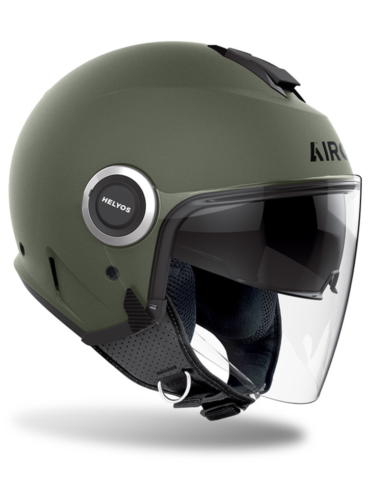 Airoh Helyos to innowacyjny kask otwarty, który zyskał uznanie dzięki swoim zaawansowanym funkcjom i wysokiej jakości wykonaniu. Jego sztywna skorupa wykonana z poliwęglanu HRT zapewnia nie tylko wyjątkową odporność na przetarcia. Dodatkowo, trzy różne rozmiary skorupy sprawiają, że doskonale dopasowuje się do głowy. Model ten wyposażono w wygodne podczas użytkowania oraz bezpieczne zapięcie mikrometryczne. Wizjer w modelu Helyos to nie tylko funkcja ochronna, ale także element zapewniający wyjątkowy komfort. Jego szeroka konstrukcja z blokadą chroni przed promieniami UV i jest odporna na zarysowania, zapewniając klarowność widoku w różnych warunkach atmosferycznych. W kaskach typu jet, komfort noszenia odgrywa istotną rolę, dlatego Airoh Helyos został wyposażony w hipoalergiczną wyściółkę. Jest nie tylko łatwa do zdemontowania, ale także nadaje się do prania, zapewniając świeżość i higienę nawet po długotrwałym użytkowaniu. Wnętrze przystosowane zostało także pod montaż interkomu. Innowacyjny system demontażu wizjera bez konieczności korzystania z narzędzi ułatwia jego czyszczenie, a dodatkowy zestaw umożliwia przeróbkę kasku otwartego na wersję bez wizjera, co daje użytkownikowi większą elastyczność. Za prawidłową cyrkulację powietrza odpowiadają wloty powietrza umiejscowione nad wizjerem oraz po bokach. W tylnej części kasku motocyklowego znajduje się wylot odprowadzający ciepłe powietrze z wnętrza.