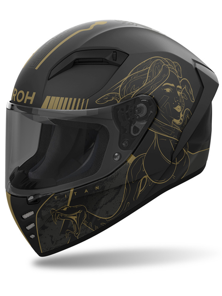 Connor od marki Airoh to kask integralny, który został zaprojektowany dla osób, poszukujących funkcjonalnego kasku na turystyczne wypady motocyklowe. Charakteryzuje się wytrzymałością i optymalną absorpcją siły uderzenia, wytworzonej podczas upadku, dzięki skorupie kasku, która została wykonana z kompozytu HRT, opracowanego na bazie termoplastiku. Omawiana skorupa produkowana jest w trzech rozmiarach, co w zupełności wystarcza do swobodnego wyboru odpowiedniego rozmiaru kasku do głowy użytkownika. Kask integralny Airoh Connor posiada przystosowany pod montaż Pinlocka (sprzedawany osobno) wizjer, dzięki czemu gwarantuje szerokie pole widzenia w różnych warunkach pogodowych. Wydajny system wentylacji, w którego skład wchodzą otwory wentylacyjne, w postaci kanałów wlotowych i wylotowych gwarantuje stały dopływ świeżego powietrza do wnętrza kasku. Umieszczona wewnątrz wyściółka jest w pełni wyjmowana i można ją oddać do prania po długiej i wyczerpującej wyprawie motocyklowej. Homologacja ECE 22.06 potwierdza, że kask integralny Connor został opracowany zgodnie ze standardami bezpieczeństwa, obowiązującymi w Unii Europejskiej. Model ten świetnie się sprawdzi również w grupowych wycieczkach, gdyż przystosowany jest do montażu komunikatora drogowego, w postaci interkomu (brak w zestawie).