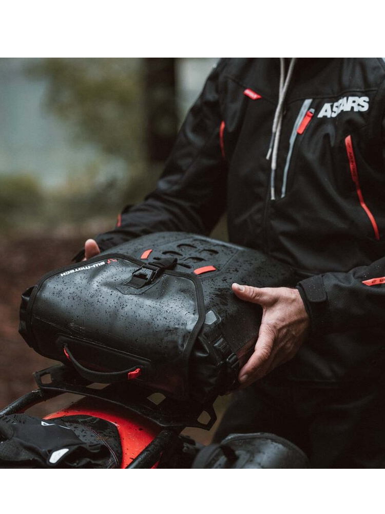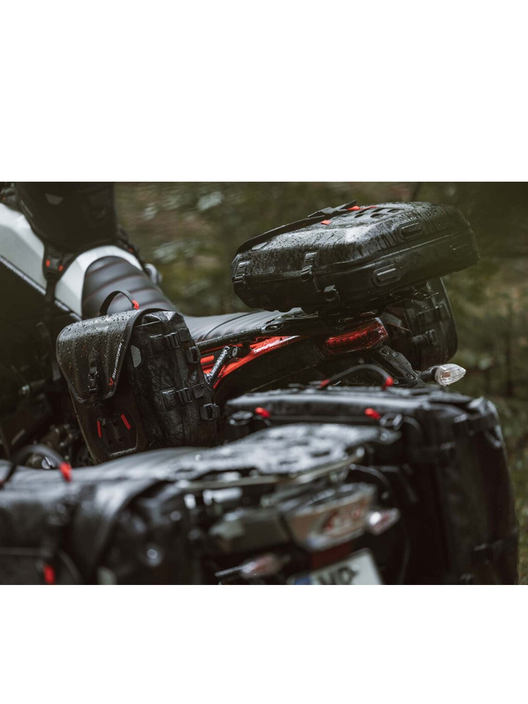 Torby są montowane na bagażniku SLC lub za pomocą pętli na ogonie. Podobnie jak wodoodporne torby na zbiornik, SysBag M WP są wykonane z podstawy TPU i komponentów EVA. Oba materiały są zgrzewane termicznie i łączone ze sobą, tworząc zwartą całość, dzięki czemu torba jest całkowicie wodoodporna. Modele SysBag WP są niezawodnymi towarzyszami bezkompromisowych przygód motocyklowych. Dzięki starannemu doborowi materiałów i starannemu wykonaniu torby są całkowicie wodoodporne i niezwykle wytrzymałe. Torby mają zamknięcie zwijane i zachodzące na siebie wieczko. Wewnętrzna kieszeń jest wyjmowana, dwie swobodnie ustawiane przegrody zapinane na rzep ułatwiają oddzielenie bagażu.