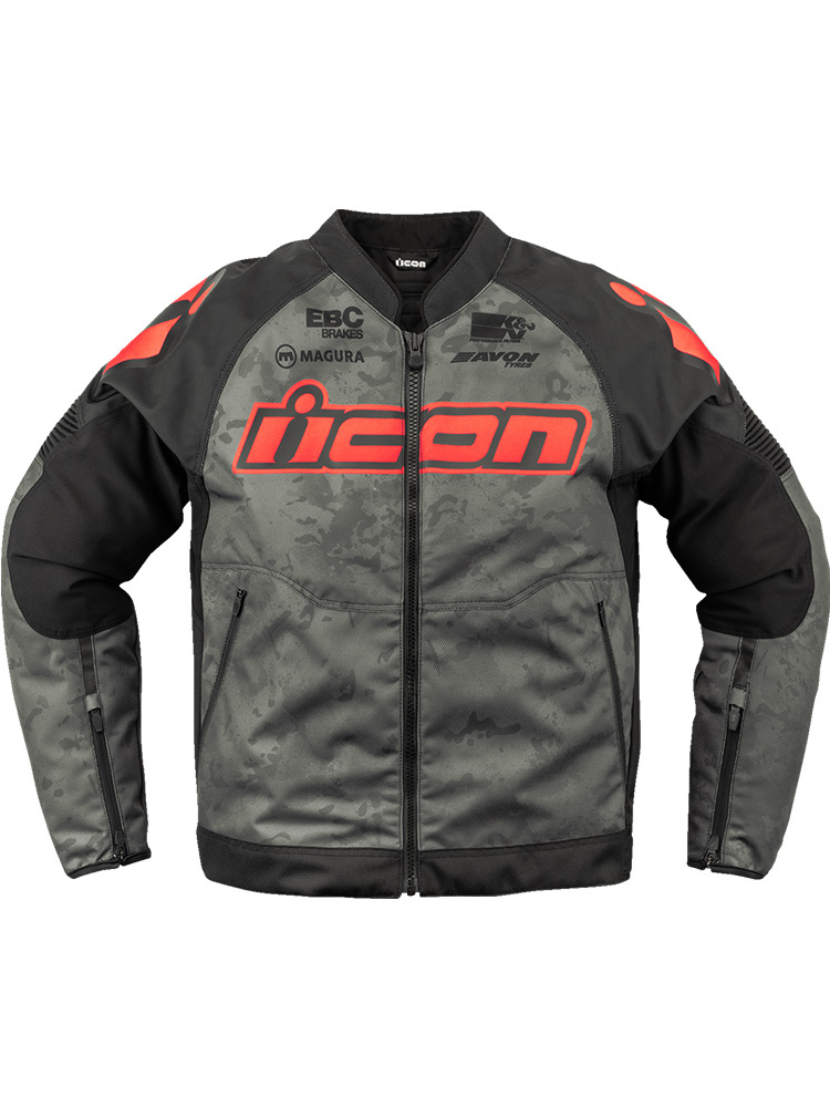Overlord 3 Magnacross to kurtka motocyklowa tekstylna od marki Icon z subtelnym nadrukiem moro, w której możesz jeździć po mieście, jak i wybrać się na krótkie wypady poza jego granice. Charakteryzuje się sportowym krojem z wyprofilowanymi rękawami pozwalającymi przyjąć agresywną pozycję na motocyklu. Tekstylna kurtka motocyklowa Overlord 3 Magnacross uszyta jest z trwałego poliestru 300D z dodatkowymi wzmocnieniami w strategicznych miejscach. Efektem tego jest uzyskany certyfikat bezpieczeństwa klasy A. Przed poważniejszymi kontuzjami chronią atestowane ochraniacze pleców Viper D3O® oraz łokci i ramion D3O® T5 Evo, które są dobrze wentylowane oraz skutecznie rozpraszają siłę uderzenia. Model ten oferuje optymalną cyrkulację powietrza, dzięki przedniemu panelowi mesh AirFly™, dwukierunkowym zamkom na mankietach oraz wbudowanemu otworowi w dolnej części pleców. Na wyposażeniu kurtki znajdziesz wypinaną kamizelkę ocieplającą, która przyda się podczas jazdy w chłodniejsze dni. Jedyna dostępna regulacja umieszczona jest w pasie. Wygodne wykończenie kołnierza oraz rozciągliwe panele na bicepsach to elementy wpływające na ogólny komfort. Do dyspozycji masz również dwie kieszenie zewnętrzne na osobiste drobiazgi.