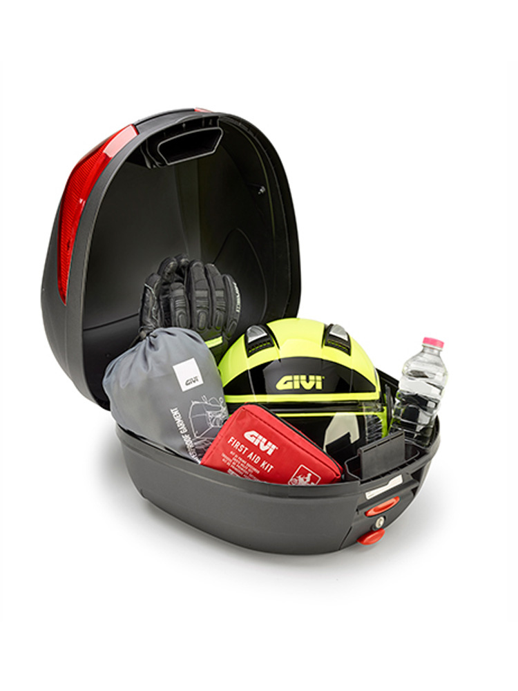 Kufer centralny GIVI Monolock B29 czarny z czerwonymi odblaskami [uniwersalna płyta montażowa w zestawie; pojemność: 29 l]