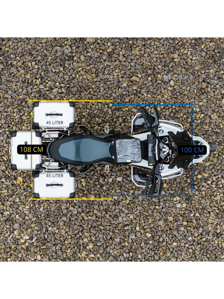 Zestaw: kufry boczne aluminiowe Zega Evo "And-Black" 45/45 + stelaż Touratech do BMW R 1300 GS (23-) [poj.: 2 x 45 l]