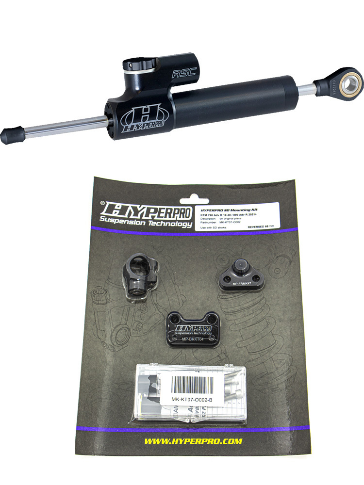 Zestaw: amortyzator skrętu progresywny odwrócony Hyperpro RSC [68 mm] Dark Edition + zestaw mocujący do KTM 790 Adventure R (19-22)/ 890 Adventure R (21-24)