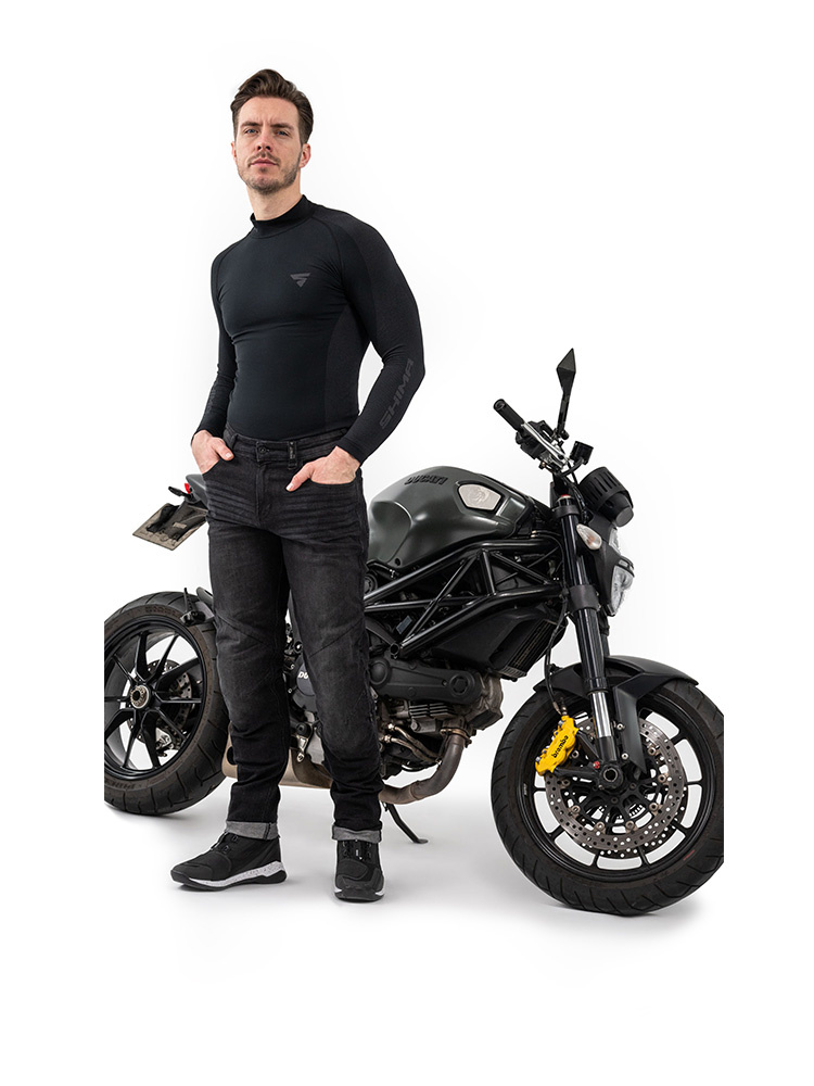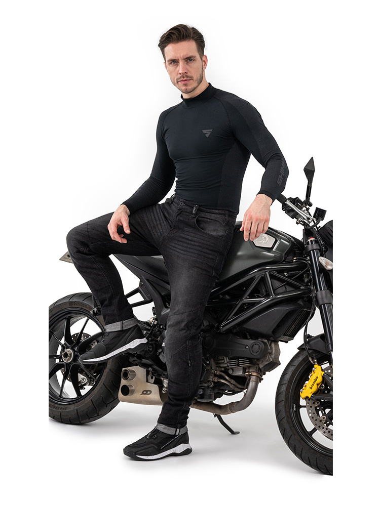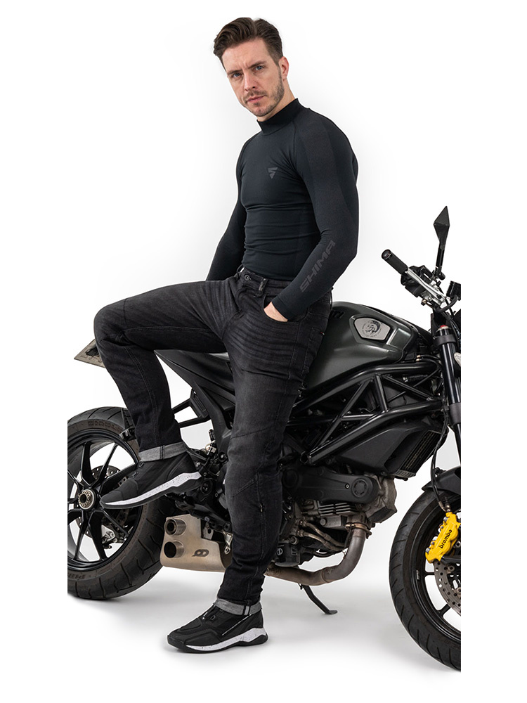 W ofercie Shimy pojawił się nowy model jeansów motocyklowych Rider. Klasyczne, wygodne i bezpieczne, są doskonałym wyborem do miejskiej jazdy jednośladem. Możesz je połączyć z kurtką lub bluzą motocyklową za pomocą krótkiego zamka lub specjalnej pętelki, dzięki czemu unikniesz jazdy z odsłoniętymi plecami. Jeansy motocyklowe Rider wykonane są z elastycznego i bardzo mocnego materiału, który w newralgicznych miejscach jak kolana, biodra i pośladkach posiada wzmocnienia z zaawansowanej tkaniny ArmorTwill™. Producent wyposażył je w atestowane ochraniacze kolan AirForce™ Flex poziom 2, które zapewniają ochronę na wysokim poziomie. Chowane są w kieszeniach z dostępem od zewnątrz i 3 -stopniową regulacją wysokości. Opcjonalnie doposażyć się możesz w dedykowane ochraniacze bioder, które zwiększą zasięg ochrony. Wywijając nogawkę, odsłonisz odblaski, dzięki którym będziesz lepiej widoczny po zmroku. Do dyspozycji masz 4 kieszenie zewnętrzne, szlufki na opcjonalny pasek oraz zawieszkę na klucze.