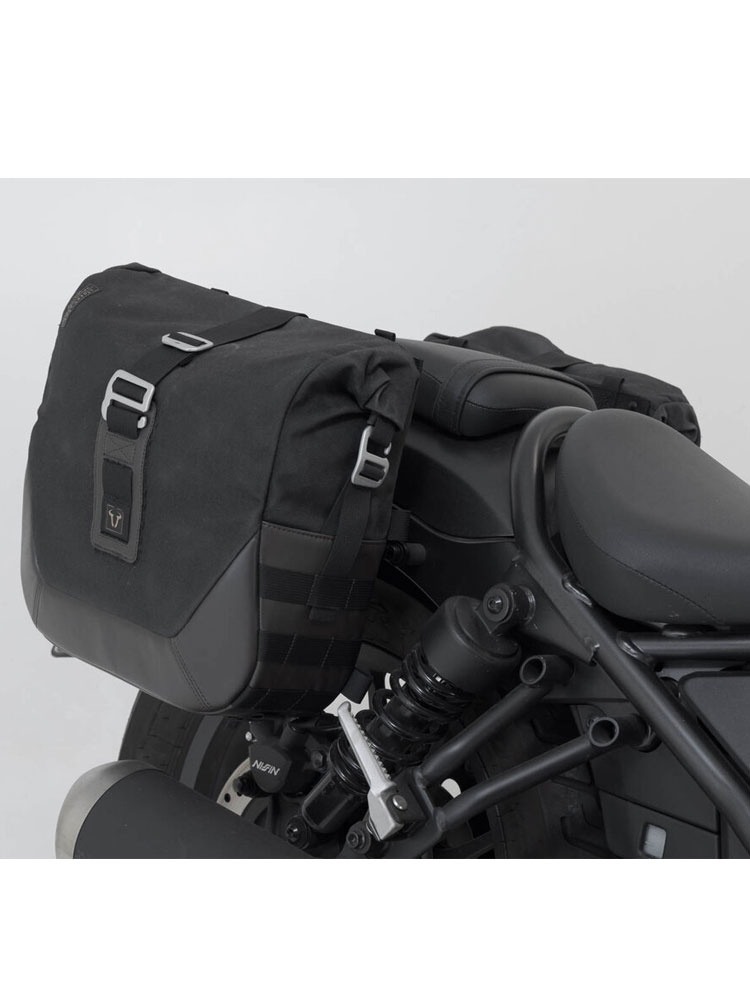 Zestawy toreb bocznych Legend Gear są dostosowane do kształtu motocykla jego ogona i wysokości wydechu. W zależności od modelu motocykla systemy są dostępne z jednym lub dwoma bocznymi bagażnikami SLC. Torby boczne LC1 / LC2 łączą klasyczny wygląd z nowoczesnym prowadzeniem. Torby te można łatwo przymocować i zdemontować na bagażniku bocznym SLC za pomocą systemu szybkiej blokady. Wytrzymała skóra syntetyczna Napalon i woskowana tkanina płócienna podkreślają wyszukany design miękkich motocyklowych toreb Legend Gear w stylu vintage. Torby boczne LC1 / LC2 są dostępne w wersji czarno-brązowej lub jednolitej czarnej.