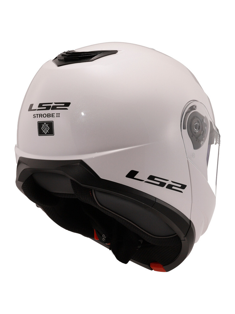 Kask szczękowy LS2 Strobe II to model, który łączy w sobie trzy najważniejsze cechy: funkcjonalność, bezpieczeństwo oraz komfort użytkowania. Oferuje wytrzymałość i skuteczną absorpcję wytworzonej przy kontakcie z asfaltem energii uderzenia, dzięki wykonanej z trwałego kompozytu KPA skorupie. Dzięki wyposażeniu w odporny na zarysowania i przystosowany do wpięcia Pinlocka wizjer z filtrem UV oraz zintegrowaną blendę przeciwsłoneczną model ten, gwarantuje widoczność na wysokim poziomie w różnych warunkach pogodowych. Za pomocą systemu Quick Release wizjer, można komfortowo wymienić bez konieczności używania dodatkowych narzędzi. Środkowa część kasku, została wzbogacona o hipoalergiczną wyściółkę, odpowiadającą za odprowadzanie potu i wilgoci z twarzy motocyklisty. Kask szczękowy LS2 Strobe II posiada wygodne w obsłudze zapięcie typu Microlock. Konstrukcja przystosowana jest również do montażu opcjonalnego interkomu motocyklowego LS2 Intercom, opracowanego we współpracy z firmą Cardo. Omawiając ten model, warto zwrócić uwagę na dwie homologacje: ECE 22.06 oraz P/J. Pierwsza z nich jest potwierdzeniem faktu, iż kask szczękowy Strobe II został zaprojektowany zgodnie z rygorystycznymi, europejskimi standardami bezpieczeństwa. Natomiast homologacja P/J sprawia, że kask można w legalny sposób użytkować w dwóch specyfikacjach: z podniesioną lub opuszczoną szczęką.