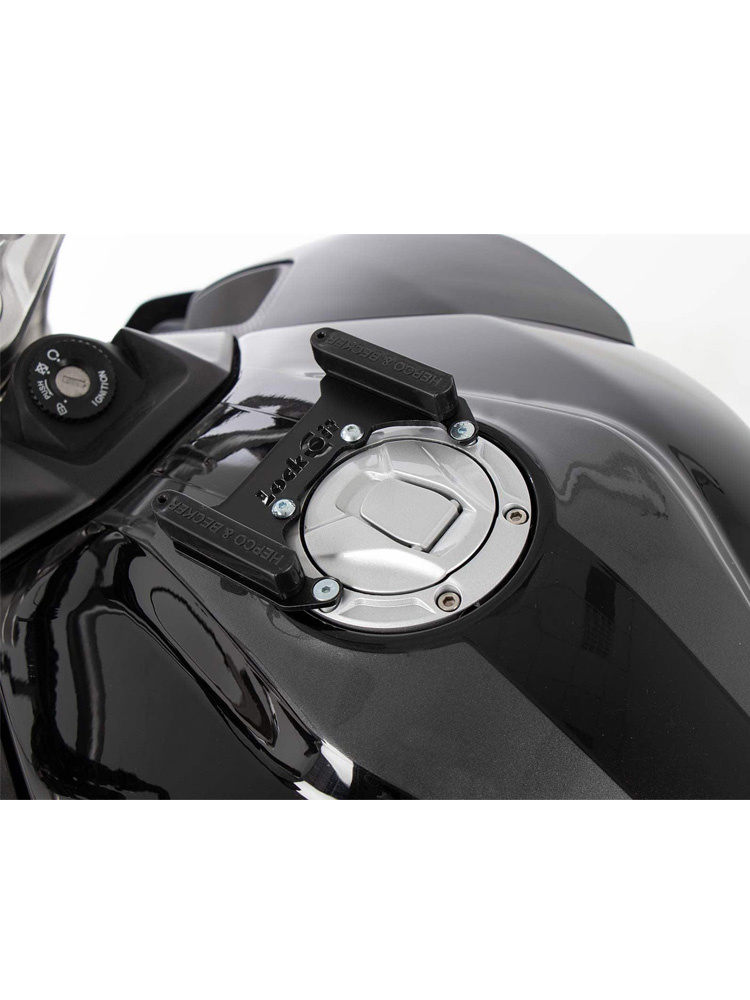 Ogólne funkcje i działanie pozostają takie same. To, co odróżnia mocowanie Basic od mocowania Lock-it, to zmiana z magnetycznego systemu blokowania na system w pełni mechaniczny. Rzeczywisty „metalowy pierścień” specyficzny dla modelu jest taki sam dla obu wersji. Uwaga: Torba na zbiornik z uchwytem Lock-it nie może być umieszczona na pierścieniu zbiornika BASIC i odwrotnie. Uchwyt na zbiornik i pierścień na zbiornik muszą pochodzić z tego samego systemu.