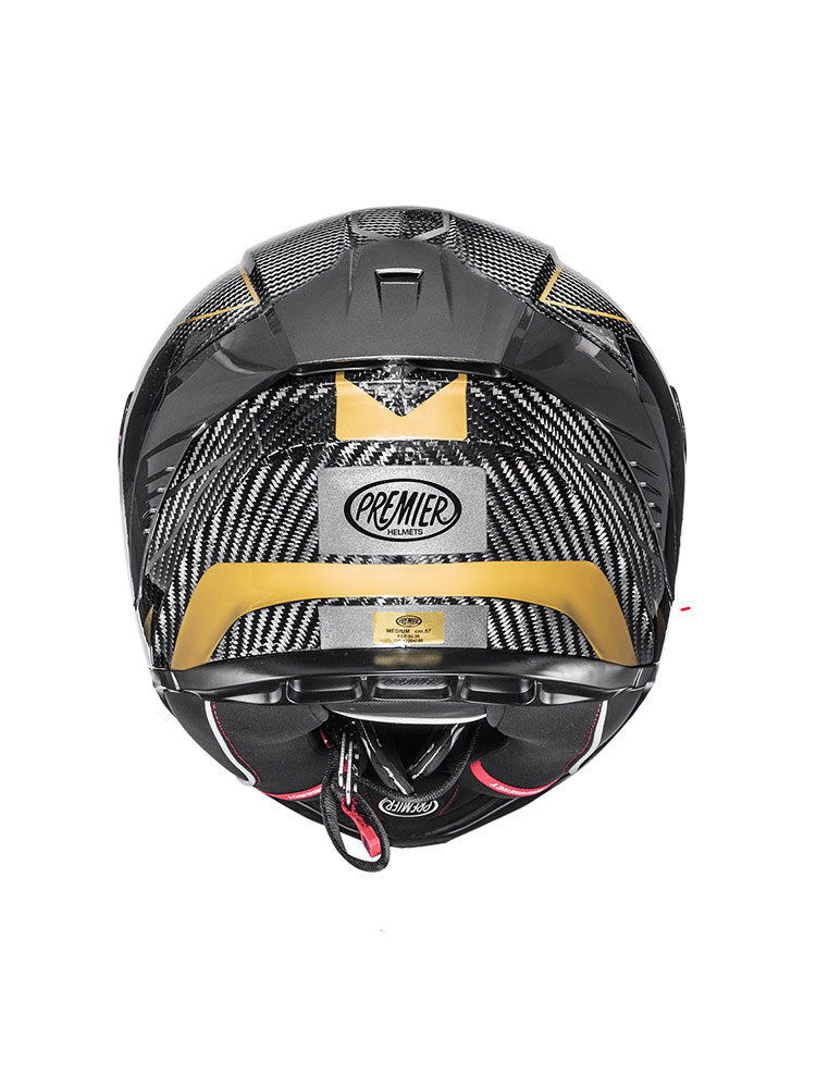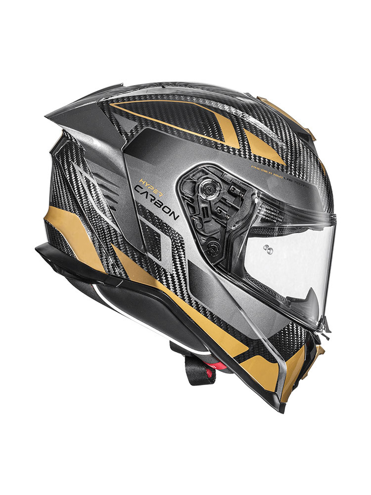 Premier Hyper Carbon, to kask motocyklowy integralny, oferujący wysoki poziom bezpieczeństwa i komfort użytkowania. Został opracowany zgodnie z europejskimi standardami bezpieczeństwa, o czym świadczy homologacja ECE (norma 22.06). Skorupa kasku, została wykonana z Carbonu, dzięki czemu konstrukcję charakteryzuje lekkość oraz niezwykła wytrzymałość, która objawia się między innymi w doskonałej absorpcji energii uderzenia. Kask integralny Hyper Carbon, zapewnia szerokie pole widzenia w różnych warunkach pogodowych. W słoneczne dni, twarz motocyklisty przed szkodliwymi promieniami ultrafioletowymi, zabezpiecza wyposażony w filtr UV wizjer kasku. Jego dodatkową zaletą jest przystosowanie do wpięcia Pinlocka, który zapobiega procesowi parowania szybki podczas jazdy w niskich temperaturach. Za pomocą mechanizmu Quick Release System wizjer można wymienić w kilka sekund, a cały proces odbywa się bez użycia jakichkolwiek narzędzi. Kask integralny Premier Hyper Carbon posiada wewnętrzną wyściółkę Sanitized, która została wykonana z hipoalergicznego materiału i odpowiada za optymalne odprowadzanie wilgoci. Zastosowane zapięcie typu DD (Double-D), dzięki czemu kask można użytkować także na zamkniętych obiektach wyścigowych. Kask integralny Hyper Carbon, jest przyjazny dla osób noszących okulary. Może stanowić alternatywę do grupowych wypraw motocyklowych, gdyż jego konstrukcja jest przystosowana do montażu opcjonalnego interkomu motocyklowego.
